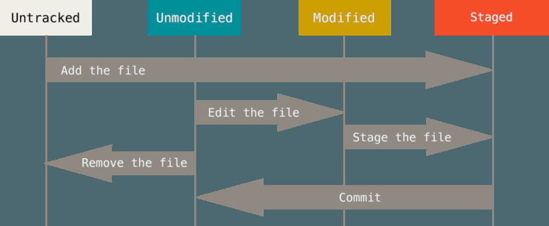 마지막 커밋 이후 아직 아무것도 수정하지 않은 상태에서 어떤 파일을 수정하면 Git은 그 파일을 Modified 상태로 인식한다. 실제로 커밋을 하기 위해서는 이 수정한 파일을 Staged 상태로 만들고, Staged 상태의 파일을 커밋한다. 이런 라이프사이클을 계속 반복 하는 것이다.